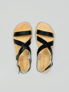 To preserve the integrity of the leather, please unbuckle the sandals when wearing or removing them. Forcing your feet in or out without unbuckling may strain or damage the strap over time.